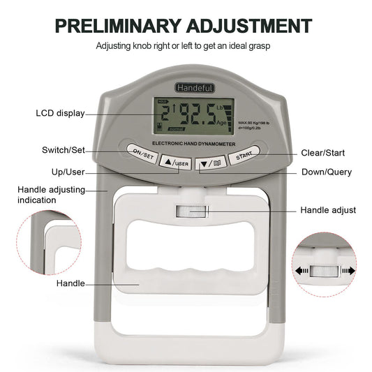 Handeful Hand Dynamometer Grip Strength Trainer - Electronic Hand Grip Strength Tester Grip Strengthener Hand Exerciser Meter Digital Hand Grip Training Gauge 198Lbs / 90Kgs