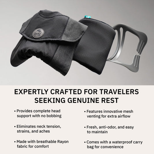 Trtl Pillow Plus - Adjustable Neck Pillow for Airplane Travel - Travel Pillow with Luxury Foam Padding for Head and Neck Support - Lightweight - Machine Washable - Waterproof Carry Bag - Charcoal
