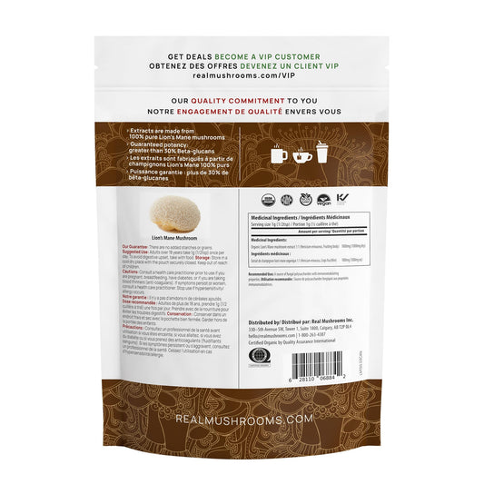 Real Mushrooms Lion’s Mane Powder - Organic Lions Mane Mushroom Extract with Immunomodulating Properties & Antioxidants - Vegan Mushroom Supplement, 60 Servings